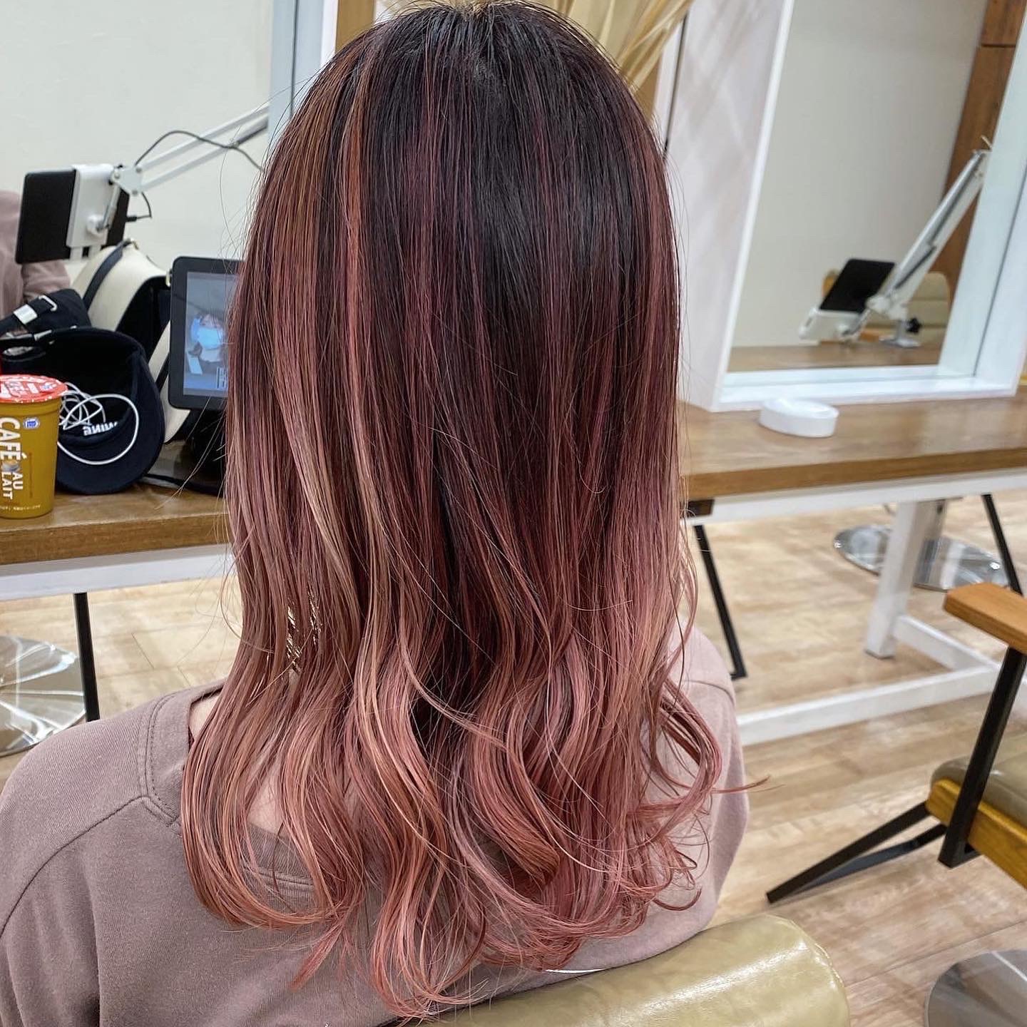 ハイライトグラデーションでベースを作ってからオンカラーで色味の濃さを調節して作るハイライトグラデーションカラー☆