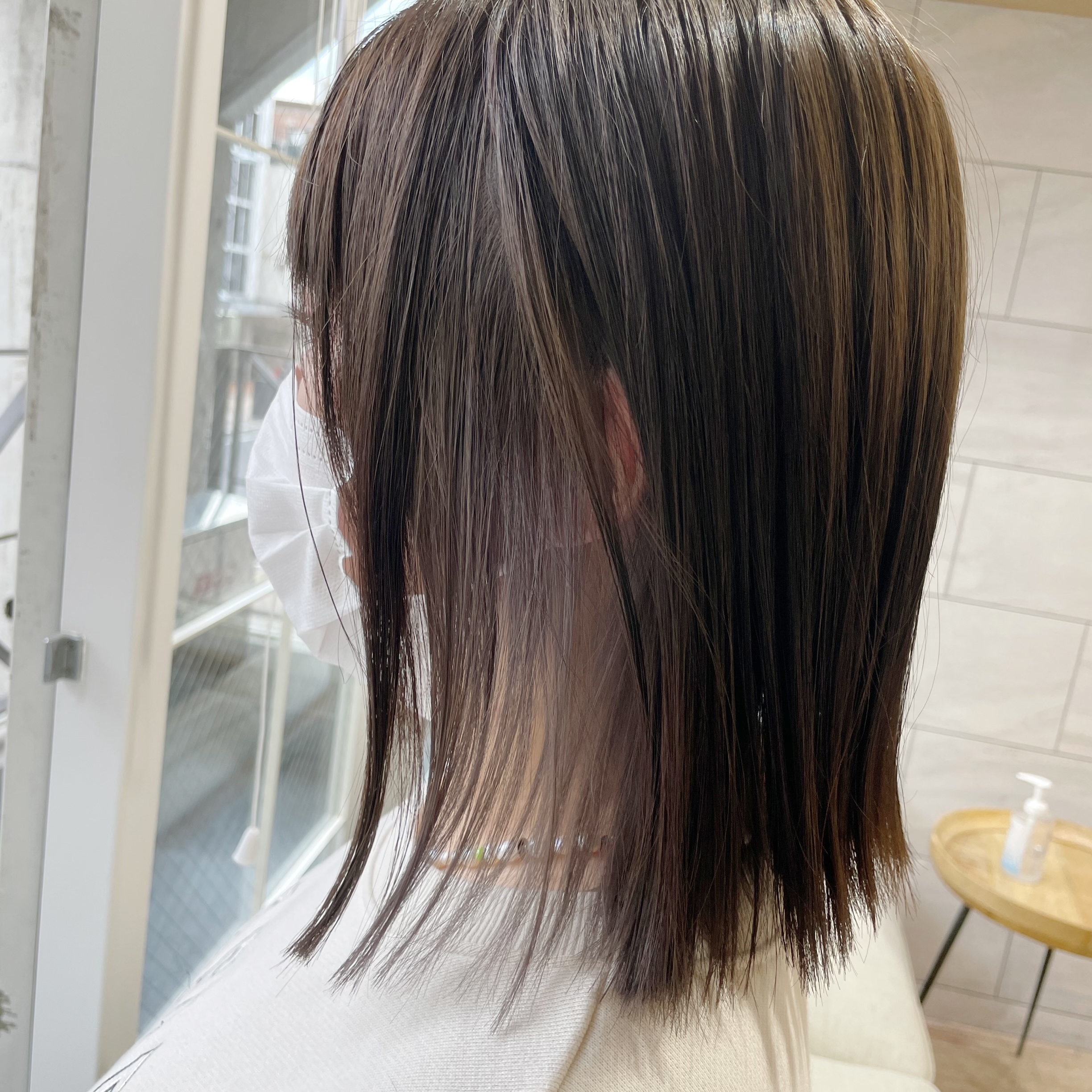 インナーカラー/グレージュ全体のブリーチカラーに比べて