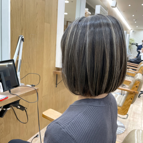 #ハイライト#髪質改善 #髪質改善トリートメント#水素トリートメント#酸熱トリートメント#韓国ヘア#大人ハイライト#グレージュ#外国人風ハイライト#グラデーション#ヘッドスパ#縮毛矯正#インナーダブルカラー#ダブルカラー#ボブ#ミニマムボブ #ショート